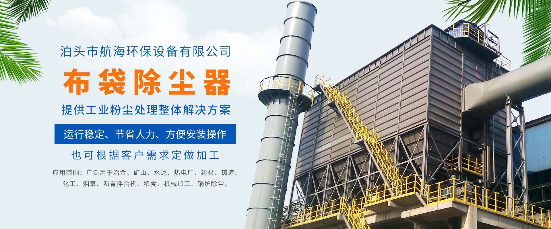 航海環(huán)保設(shè)備有限公司主要生產(chǎn):布袋除塵器,單機除塵器,旋風除塵器,脫硫除塵器,木工除塵器,鍋爐除塵器,礦山除塵器,靜電除塵器等除塵設(shè)備,以及除塵器骨架...